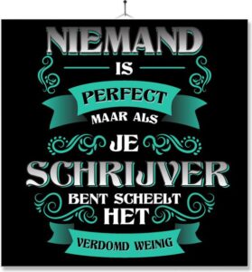 Een grappige tegel met een quote over schrijven op je bureau of aan de muur helpt je herinneren wat je bent of is een waarschuwing voor anderen.